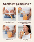 Diluer 1 stick dans 1 verre d'eau. Bien mélanger et boire immédiatement.